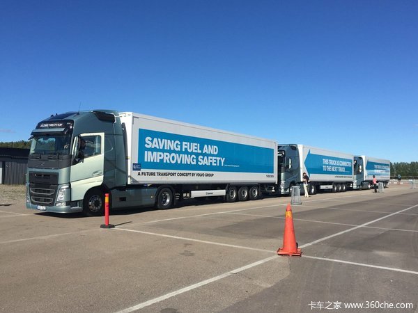视频中演示了三辆沃尔沃卡车自动驾驶技术的测试,在前面卡车的领导和控制下,后两辆沃尔沃卡车可实现自动驾驶。