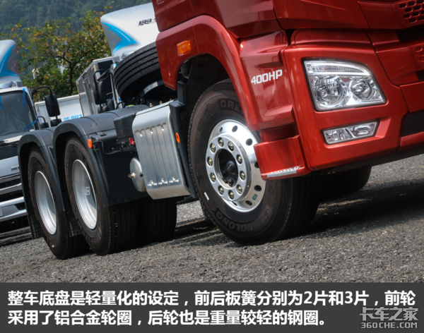这是一款解放JH6卓越版6X4牵引车,搭载潍柴400马力国六发动机,匹配法士特12挡变速箱,该车主打轻量化设计,特点是自重较轻,下面来详细看看。