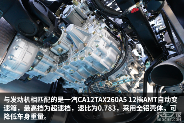 该变速箱是解放根据中国路况研发的AMT变速箱,可广泛适应中国目前的道路状况和运输情况。因为不需要再去踩离合器,整个换挡操作对于用户来说轻松省劲又舒适,彻底解放左脚和右手。同时根据变速箱的智能换挡逻辑,避免误操作也提高了行车安全性。