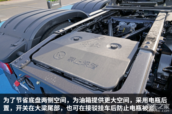 小油箱为300+100L结构,大小油箱皆带有加热功能,冬季时用户不需要加太多更低标号柴油,可适当降低用车成本,同时大容量油箱也可充分保障车辆的续航需求。
