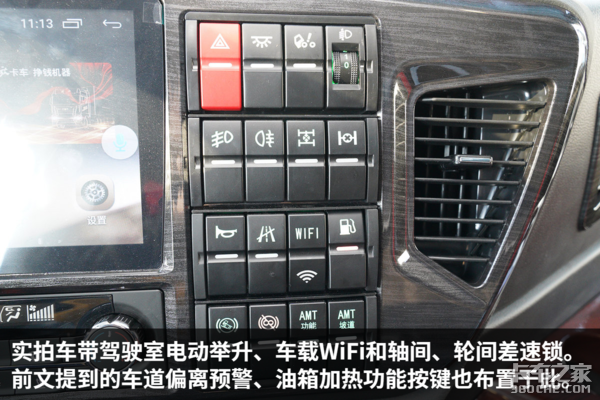 为了应对国内道路经常堵车的环境,这辆解放JH6还带有一个特殊的功能——跟车模式。经济模式下开启这个功能,这辆JH6 1-6挡的换挡转速会被提升大约100转左右,具有更好的动力性,这样的好处是当你需要迅速加速时,车辆反应会更快,适合堵车路况下防止被插队时使用,该功能通过短摁一次“AMT功能键”开启。