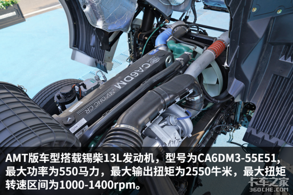 本文我们要介绍的便是解放青汽旗下装配AMT自动变速箱的车型,车辆版本为解放JH6 智尊版 四季款 550马力 AMT牵引车,主打长途物流、散货运输。