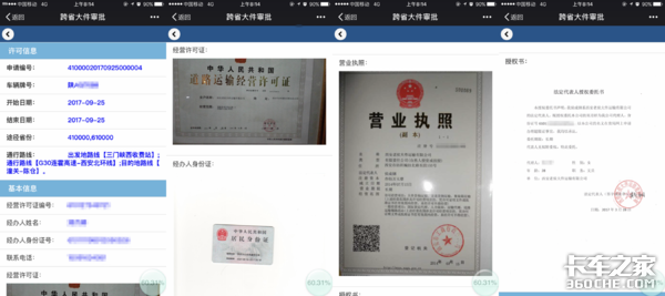 通过扫描二维码,会显示该许可证的编号,车辆的车牌号、通行时间、通行路线、厂牌型号、装载之后的外廓尺寸、整备质量、荷载质量,以及车辆所属公司的经营许可证、营业执照、法定代表人授权委托书、货物信息、运输证等非常详细的信息。