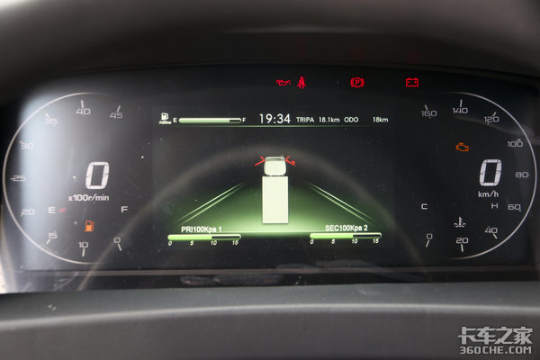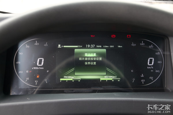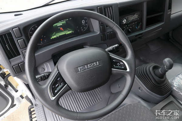 这款车的驾驶室不仅继承了庆铃五十铃优秀的设计理念,同时还在其他方面进行了补强。庆铃铃咖标配全液晶仪表盘,显示效果特别细腻,除了支持气压、保养、油耗等常规信息之外,通过增加选配装置,还可以显示胎压设置、雷达设置、蹄片磨损报警设置等丰富的数据,让我们在读取信息时更加直观。