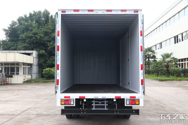 实拍车辆匹配厢式上装,这种原厂庆铃货厢具备更高的可靠性和寿命。该货厢尺寸为4130x2150x2150mm,容积约19个方,对于日常城市物流来说也基本够用。此外,还有仓栅、栏板以及冷藏上装供卡友们选择。