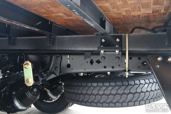 底盘方面,车辆前桥采用3片少片簧设计,后桥采用3+2主副板簧结构,在带来优秀承载力的同时,还兼顾到了整车轻量化,这也是当下比较主流的一种布局方式。该车配备5.5吨级庆铃原厂后桥,搭配高强度车架,进一步确保了车辆满载下的承载表现。