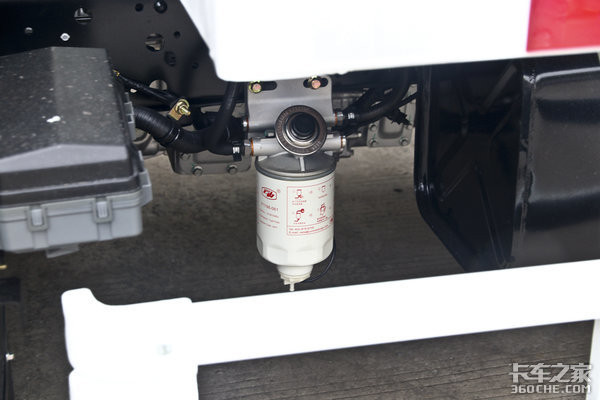 从底盘上可以看到,该车采用大量集成化设计,摒除多余安装支架,不仅重量更轻,系统还更加稳定。例如粗滤与精滤集成一起、ABS阀与快放阀集成总成、ABS阀与继动阀集成总成等,这种集成化设计可以降低零部件数量,减少管路接头数量,一定程度上降低车辆故障率。