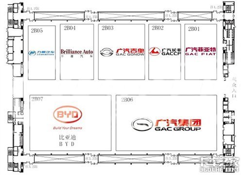 2.2号馆参展品牌:力帆汽车、华晨汽车、广汽吉奥、广汽长丰、广汽菲亚特、比亚迪、广汽集团。