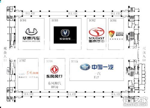 1.1号馆将是这次我们卡车之家报道广州车展的主阵地,大运汽车,广汽日野,江铃汽车等商用车是我们报道的重点。当然对于乘用车的我们也会有所报道,下面是乘用车的场馆图介绍: