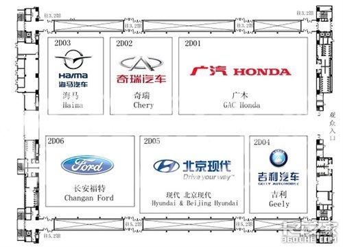 4.2号馆参展品牌:海马汽车、奇瑞汽车、广汽本田、长安福特、北京现代、吉利汽车。