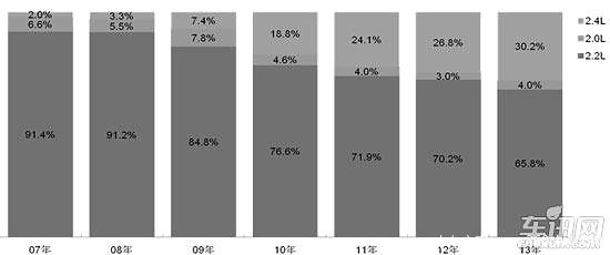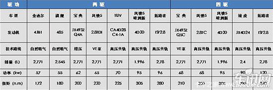 近年来,以国产皮卡以4JB机型为平台的2.8L柴油动力的比重越来越大;2.5L与2.0L动力虽比例不大,由低端柴油机型向4JB1和VM平台发动机不断升级。
