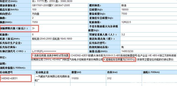 单桥的九米六公告已经很常见,但是能够拖拽23.8吨的挂车的九米六却是第一次出现在公告信息上。如果拖拽挂车这一运输形式真能够在实际运营中得到广泛应用,将大大提升公路运输特别是轻拋货物的运输效率,同时也将对一些传统的运输车型形成不小的挑战。
