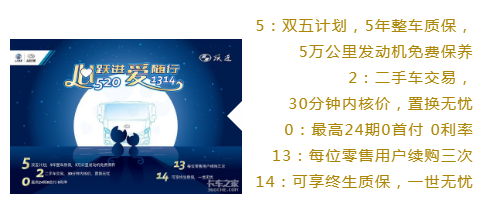 5:跃进双五服务,5年整车质保,5万公里发动机保养;