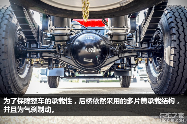 后桥速比为4.875,也是目前轻卡比较常见的一种速比配置,如果经常跑山路之类的,速比选择可以稍微略大一点。