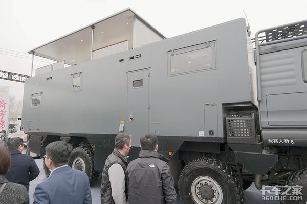 除了越野之外,这款车最让人瞩目的地方应该还是它的“上装”。在车下你就能看到,这款车上面有一个“露台”,其实上过车的人都知道,上面是一个由多半圈沙发组成的露天客厅。这种设计有点像是游艇上的“飞桥”设计,其通过升起来实现。据官方资料显示,车顶除了软包沙发外,还有木质地板、可升降桌子、不锈钢洗手池等等配置。