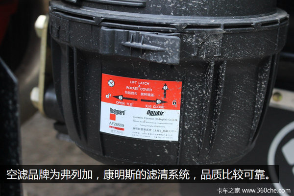 实拍的奥铃科技版型采用双级油滤,而且粗滤器采用了派克的油水分离器。空滤品牌为弗列加,康明斯的滤清系统,品质应该较高。