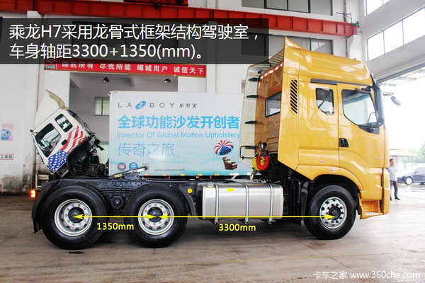 来卡车之家App【卡车之家 原创】2015年9月中国卡车公开赛,东风柳汽携乘龙H7继上海车展后再次亮相上海滩。这款车型搭载了11升玉柴6MK发动机、法士特12档变速箱的6x4牵引车,同时在未来将主打13升康明斯发动机配置。乘龙H7凭借其高颜值的外形设计、最优匹配的动力系统和高端重卡的精准市场定位,吸引了众多用户的关注。小编在卡车公开赛后走访上海安申汽车维修有限公司,对这款尚未上市的东风柳汽乘龙H7牵引车进行了实拍。