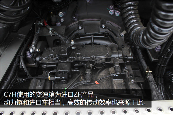 整条动力链比较成熟,曼技术发动机加上ZF全同步器16档变速箱,再配上曼技术后桥,可以说是一套相当成熟的动力链,在动力和经济性上都有不错的表现,可以和进口车的动力链进行一个PK,据了解重汽将在2016年推出搭载ZF自动变速箱的汕德卡C7H,将进一步缩短汕德卡C7H和进口车之间的距离。