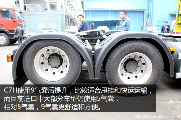 重汽和MAN合资生产的汕德卡C7H,产品定位为进口车型的替代产品。540马力9气囊空气悬架,是否会给进口车高昂的售价一张黄牌呢?