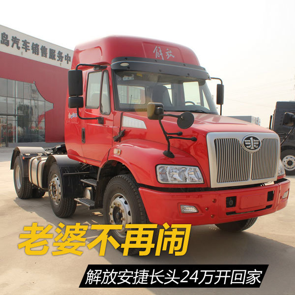 解放柳特安捷6X2长头牵引车是较为符合目前国内的市场的需求,其长头牵引车可以既保证安全性又不过分增加车辆长度。动力方面采用目前比较成熟也是解放自主研发的锡柴350马力发动机+法士特12档变速箱+498带差速锁后桥。适合平原地区的标载运输,而且7.1吨的自重也让其节油性能有着不错的表现。