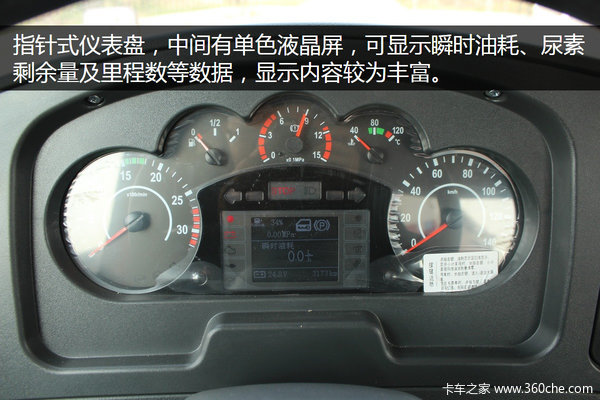 同样是解放家族式仪表盘,中间液晶屏显示效果出众,黑白两色对比度很强,即使在强光照射下依然可以清晰的显示。