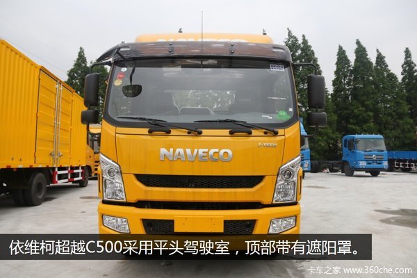 南京依维柯超越C500的轴距为3800mm,它的额定载重为4.045吨,总质量8.27吨,相比超越C300具有更大的体积以及更强的载重能力,已经属于黄牌大轻卡范畴了。此次国五新车到店,经销商报价12.85万元。