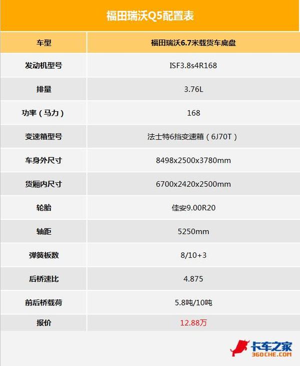 来卡车之家App● 福田瑞沃Q5(实拍车)配置表: