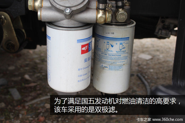 为了满足国五发动机对燃油清洁的高要求,该车采用的是双极滤。