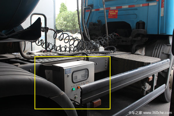 这台危化品运输车的取力器右侧底盘空出空间,用于后来加装发电机。发动机与潜液泵相连,并为潜液泵供电,泵可以加快充罐速度,提高运输效率。