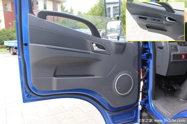 打开车门我们可以见到内饰板也为多色调组合的全新设计,宽大扶手、活动烟灰缸、银色门锁开关和扩音器外圈勾勒相呼应,提升了驾驶室的档次。该车还标配电动车窗,有一键升降功能,能实现所谓的“一指禅”,使用起来非常方便。