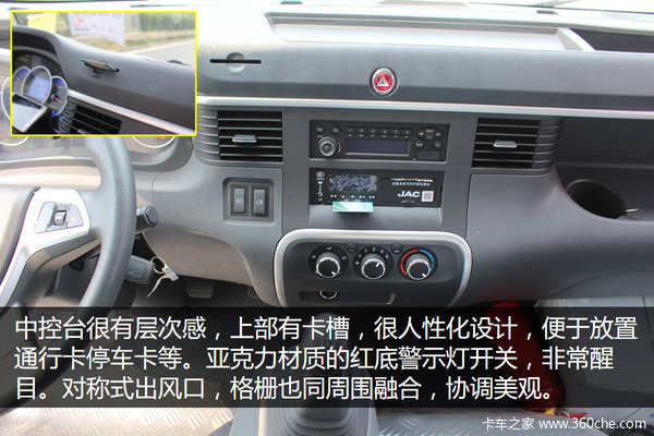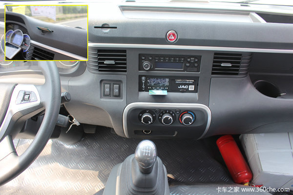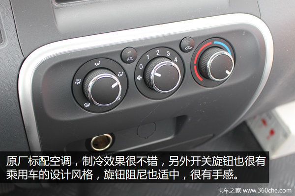 原厂标配空调,制冷效果很不错,另外开关旋钮也很有乘用车的设计风格,提升档次也融入了江淮生产乘用车的基因,旋钮阻尼也很有手感。