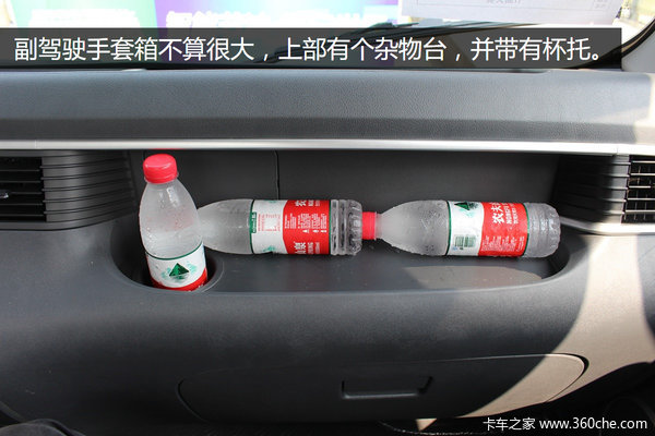 副驾驶手套箱不算很大,上部有个杂物台,并带有杯托。