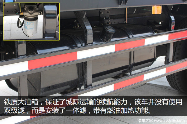 V7采用的是铁质大油箱,保证了城际运输的续航能力,但该车并没有使用双极滤,而是安装了带有燃油加热功能的一体滤。