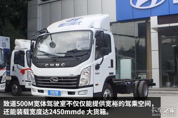 来卡车之家App【卡车之家 原创】卡车司机越来越注重驾驶室的舒适性,因此最近几年不断有厂家推出宽体轻卡,而宽体轻卡不仅仅能提供宽裕的驾乘空间,同时还能装备一个超宽货厢。四川现代近期推出的500M宽体轻卡就有着大驾驶室和大货厢的优势,它的推出也能进一步补充四川现代致道系列轻卡的产品线,这款车底盘目前在经销商的报价是90800元。
