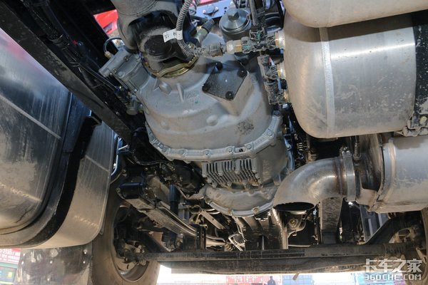 天龙VL的尿素罐设在了排气口上方,目测容积有所增加,理论上可以降低加注频率。尿素罐还增加了加注量的观察孔,可以避免过量加注,是一个比较实用的小设计。此外,尿素罐支架等零部件也采用了轻量化材料,符合目前的趋势。