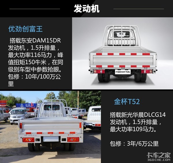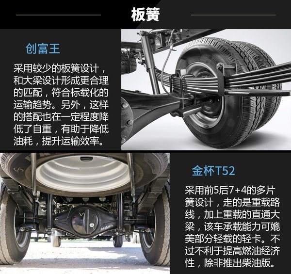 和同级别车型横向比较来看,两款车都算是比较有竞争力的后双轮微卡,并且带有明显的品牌特点,只是设计的侧重点存在差异而已。金杯T52比较载重性能和较娱乐配置等,而开瑞优劲创富王更注重动力和底盘设计,整体表现相对均衡。(文/李海贤)