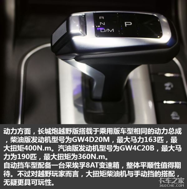 长城炮越野版车型虽然还未发布,但就长城透露出的信息来看,越野版车型的动力总成与乘用版车型保持一致。虽然越野版车型与乘用版车型在驾驶体验上必然存在着不同,但这套动力总成的动力性还是经过市场考验的。