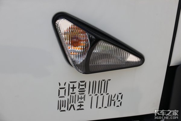 尾灯设计同样很巧妙,尾灯最外侧和货厢最外侧持平,这样在靠台作业时可以对尾灯形成保护,不至于不小心靠货台太近而碰坏尾灯。而且尾部保险杠上还带有传感器,应该是可选装倒车雷达。