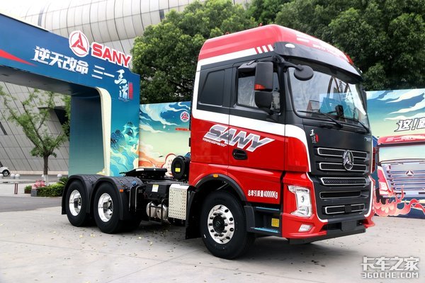 侧面主体颜色是红色,车窗周围则使用白色拉花进行装饰,在车窗下面,有醒目的三一品牌字母logo,整体造型方方正正,看起来赏心悦目。