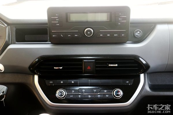 中控部分的设计很有乘用车的感觉,排布相当规整。MP3悬浮在中控台上,支持蓝牙连接,功能较全。并且可以选装10英寸大屏,提升娱乐性。MP3左侧设置有一个方形储物盒,能够放置名片以及卡类物品,右侧为12V电源。