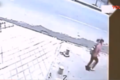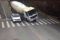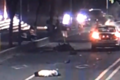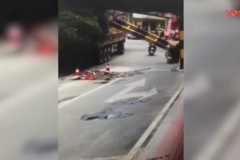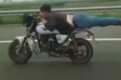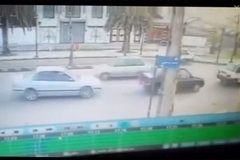 监拍摩托男被逆行轿车撞飞 凌空翻...
