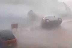 恐怖!实拍印度狂风3秒钟吹翻小汽...