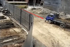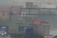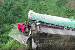 “保命网兜”!货车失控冲出匝道2...