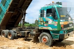 工地实拍,五十铃全挂卡车运渣土...