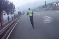 皮卡冒烟起火 民警狂追200米叫停