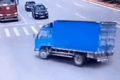 为抢一个黄灯车辆完全失控,货车...