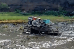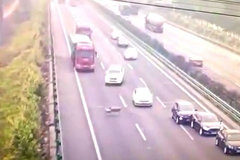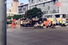 飞来横祸!泥头车侧翻甩出淤泥,行...