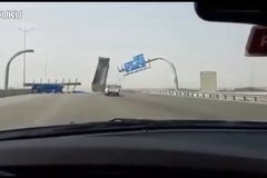 随车吊臂架未收拢就上路结果撞上...