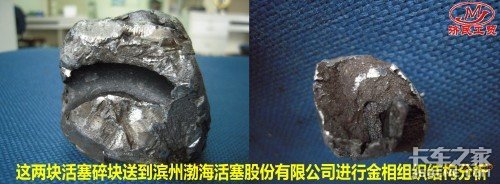 对于这个猜测,我们将下图的两个碎块将送到山东滨州渤海活塞股份有限公司做金相化验。