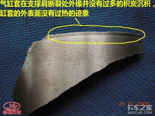E、气缸套从支撑肩出断裂,且断茬极其不规律。